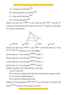 Câu 20. Nếu đường thẳng vuông góc với hai đường thẳng cắt nhau nằm trong mặt phẳng thì