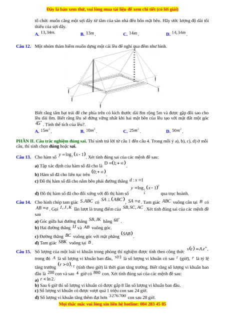 Câu 12. Một nhóm thám hiểm muốn dựng một cái lều để nghỉ qua đêm như hình.