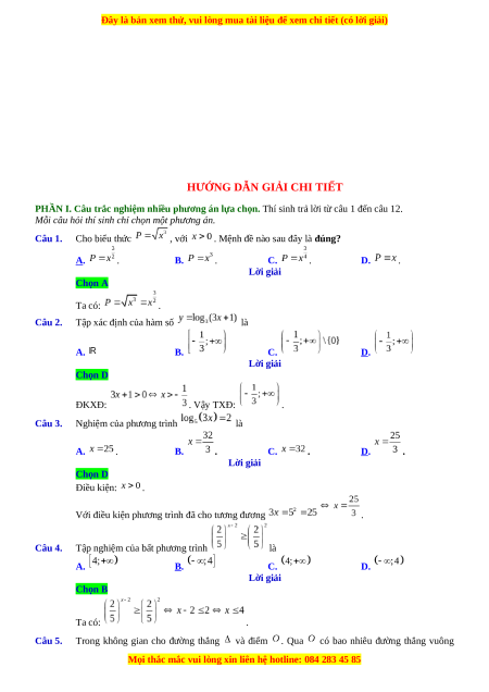. Mệnh đề nào sau đây là đúng? A. . B. . C. . D. . Lời giải Chọn A Ta có: . Câu 2.