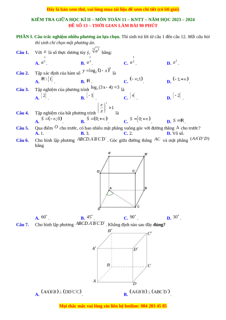 Với là số thực dương tùy ý, bằng: A. . B. . C. . D. . Câu 2.