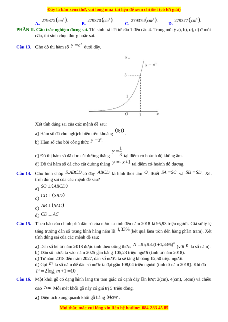 Câu 15. Theo báo cáo chính phủ dân số của nước ta tính đến năm 2018 là 95,93 triệu người. Giả sử tỷ lệ