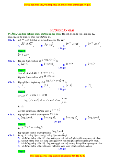 Mỗi câu hỏi thí sinh chỉ chọn một phương án. Câu 1.