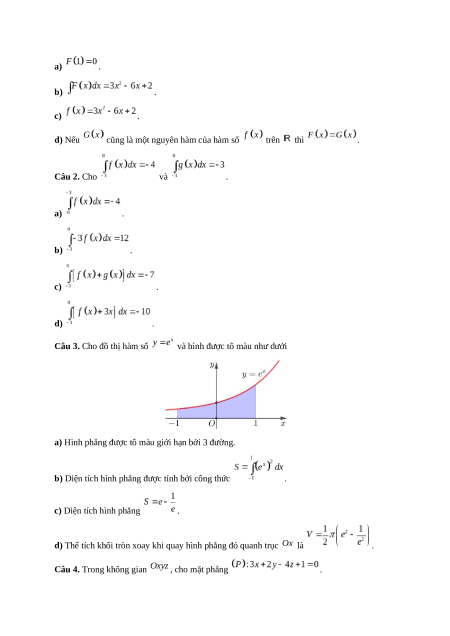 cũng là một nguyên hàm của hàm số trên thì . Câu 2. Cho và . a) . b) . c) . d) .