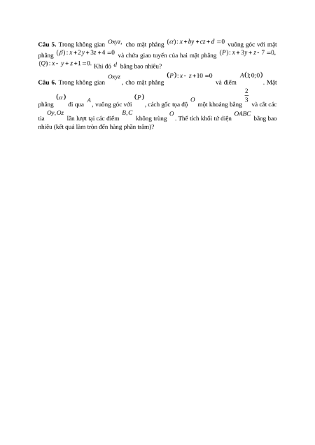 Câu 10. Cho mặt phẳng ; . Khoảng cách từ đến bằng A. . B. . C. . D. .