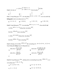 Câu 4. Trong không gian với hệ trục tọa độ , cho hai điểm và mặt phẳng . a) . b) cách mặt phẳng một khoảng bằng 1. c) Điểm cách mặt phẳng một khoảng bằng . d) Mặt phẳng