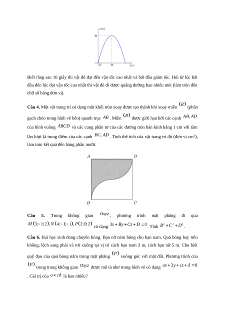 PHẦN III. Câu trắc nghiệm trả lời ngắn. Thí sinh trả lời câu 1 đến câu 6.
