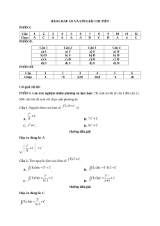 c), d) ở mỗi câu, thí sinh chọn đúng hoặc sai. Câu 1. Cho hàm số và . a) là một nguyên hàm của . b) . c) . d) . Câu 2. Cho hàm số . a) . b) . c) .