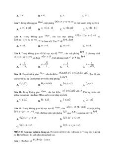 Câu 9. Trong không gian với hệ trục tọa độ , cho mặt phẳng có phương trình và điểm