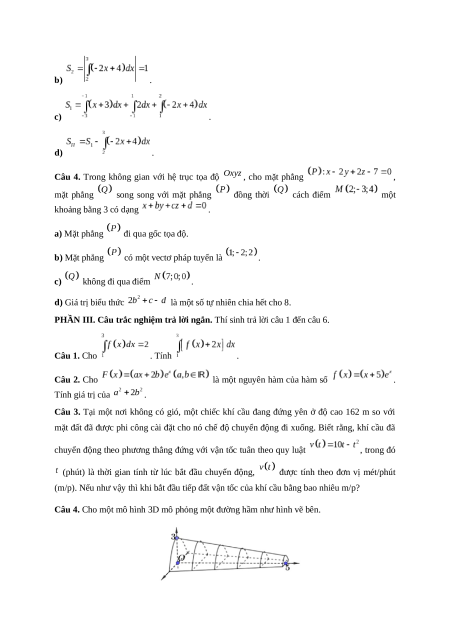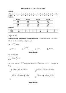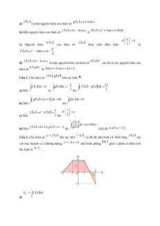 , họ tất cả các nguyên hàm của hàm số là . Câu 2. Cho hàm số liên tục trên . a) Nếu và thì . b) Nếu thì . c) Nếu thì . d) Nếu thì . Khi đó . Câu 3. Cho hàm số liên tục trên