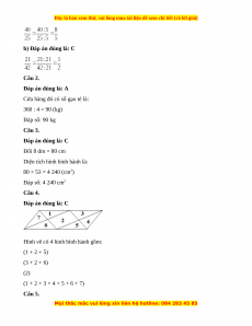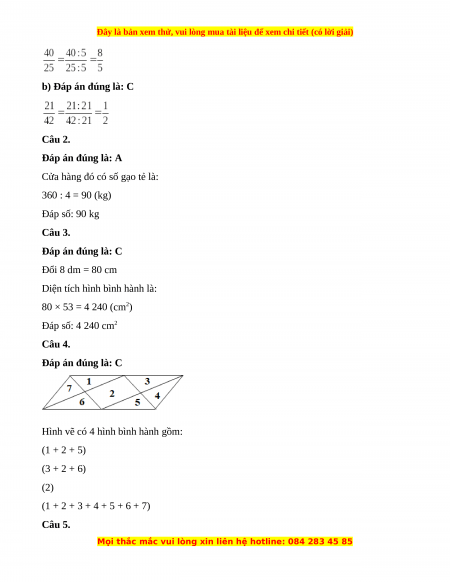 Diện tích hình bình hành là: 80 × 53 = 4 240 (cm2) Đáp số: 4 240 cm2 Câu 4. Đáp án đúng là: C