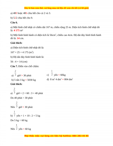 a) 480 hoặc 486 chia hết cho cả 2 và 3. b) 522 chia hết cho 9. Câu 6.