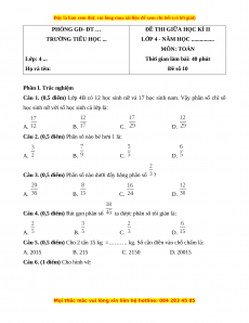 Đề thi giữa kì 2 Toán 4 năm 2023 (Đề 10)