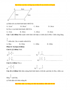 Câu 10: (2 điểm) Một thửa ruộng hình bình hành có độ dài cạnh đáy là 45m, chiều cao bằng cạnh đáy.