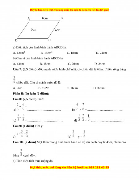Đây là bản xem thử, vui lòng mua tài liệu để xem chi tiết (có lời giải)