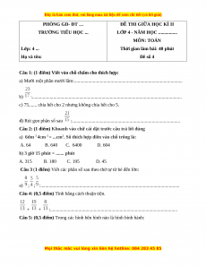 Đề thi giữa kì 2 Toán 4 năm 2023 (Đề 4)