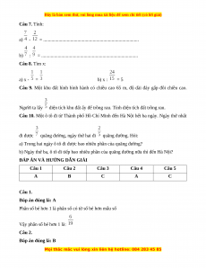b) : = .................................................................................. Câu 8. Tìm x: a) x - = b) x : = 5