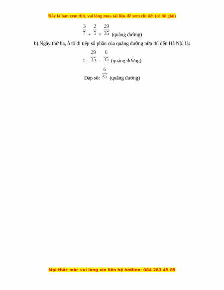 b) Ngày thứ ba, ô tô đi tiếp số phần của quãng đường nữa thì đến Hà Nội là:
