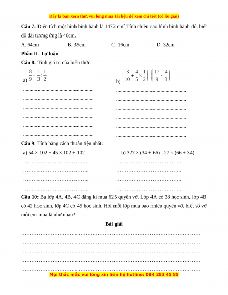 Đây là bản xem thử, vui lòng mua tài liệu để xem chi tiết (có lời giải)