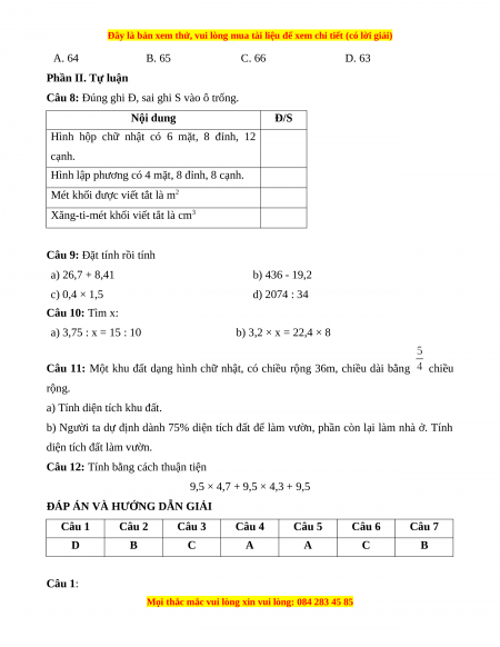 Đây là bản xem thử, vui lòng mua tài liệu để xem chi tiết (có lời giải)