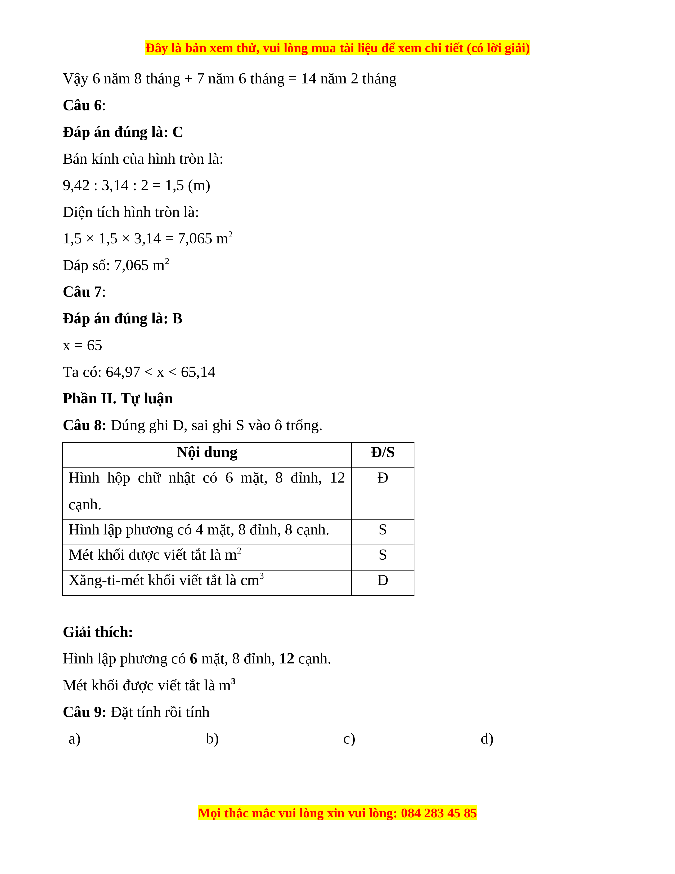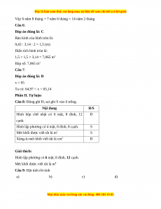 Vậy 6 năm 8 tháng + 7 năm 6 tháng = 14 năm 2 tháng Câu 6: Đáp án đúng là: C