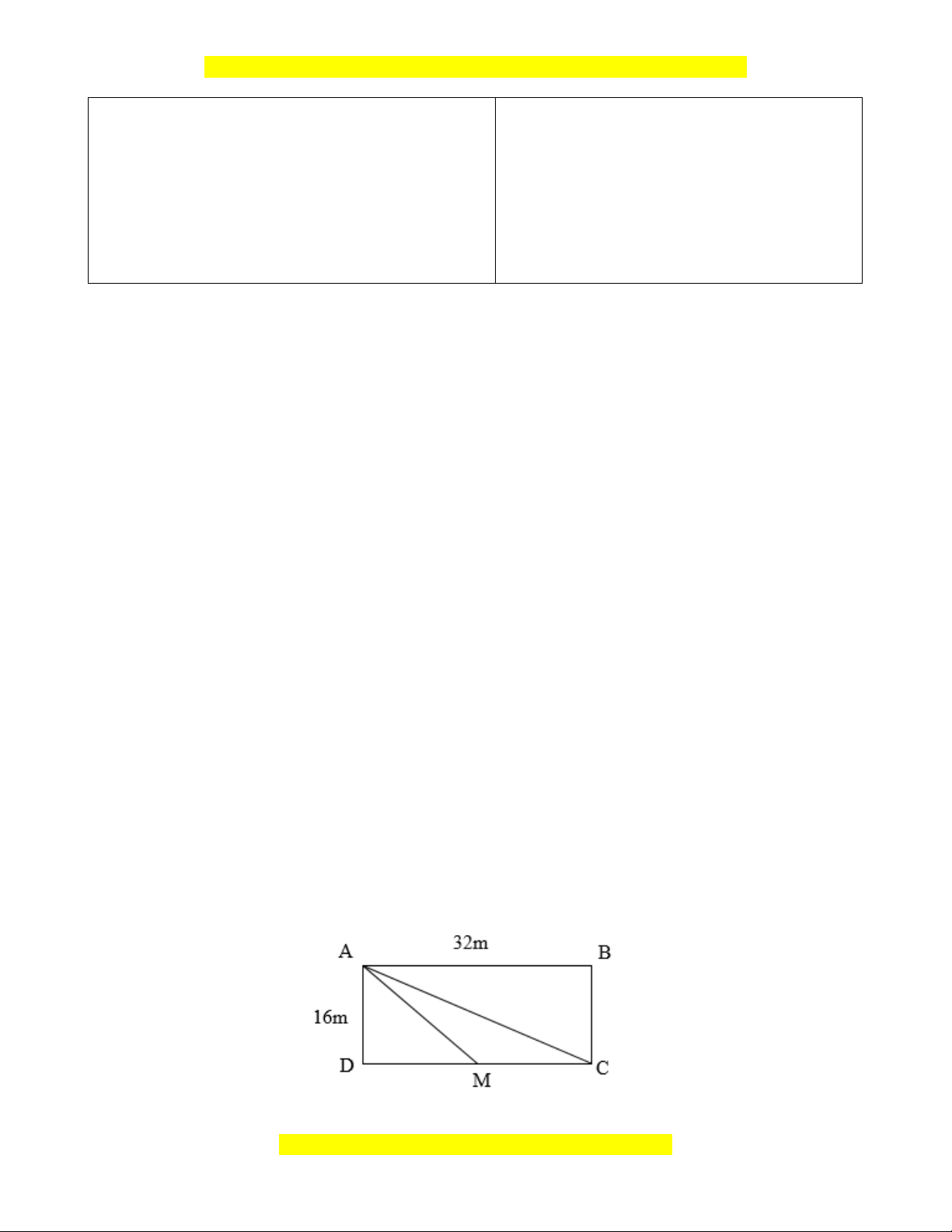 Câu 7. Cho hình chữ nhật ABCD, M là trung điểm của cạnh DC và có kích thước như hình vẽ: