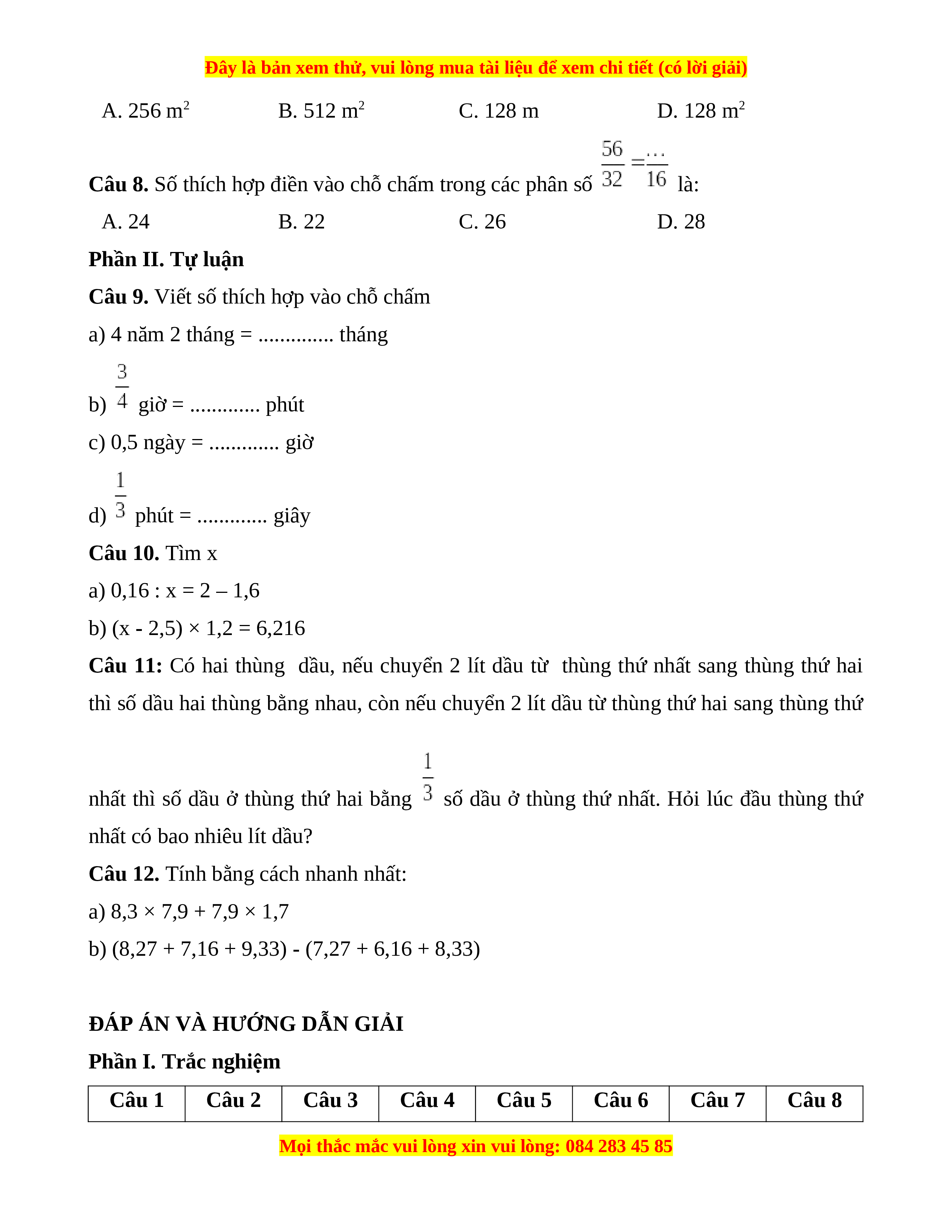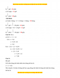 d) phút = ............. giây Câu 10. Tìm x a) 0,16 : x = 2 – 1,6