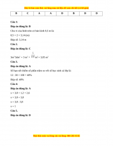 B C A A D B D D Câu 1: Đáp án đúng là: B