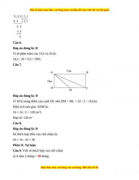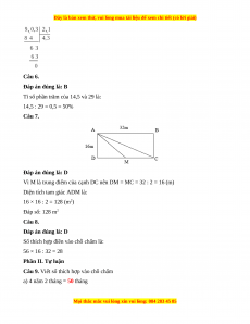 Diện tích tam giác ADM là: 16 × 16 : 2 = 128 (m2) Đáp số: 128 m2 Câu 8. Đáp án đúng là: D