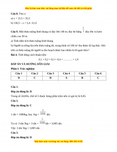 Trong số 24,856, chữ số 5 thuộc hàng phần trăm nên có giá trị là 0,05. Câu 2. Đáp án đúng là: C 1 tấn = 1000kg, hay 1kg = tấn.