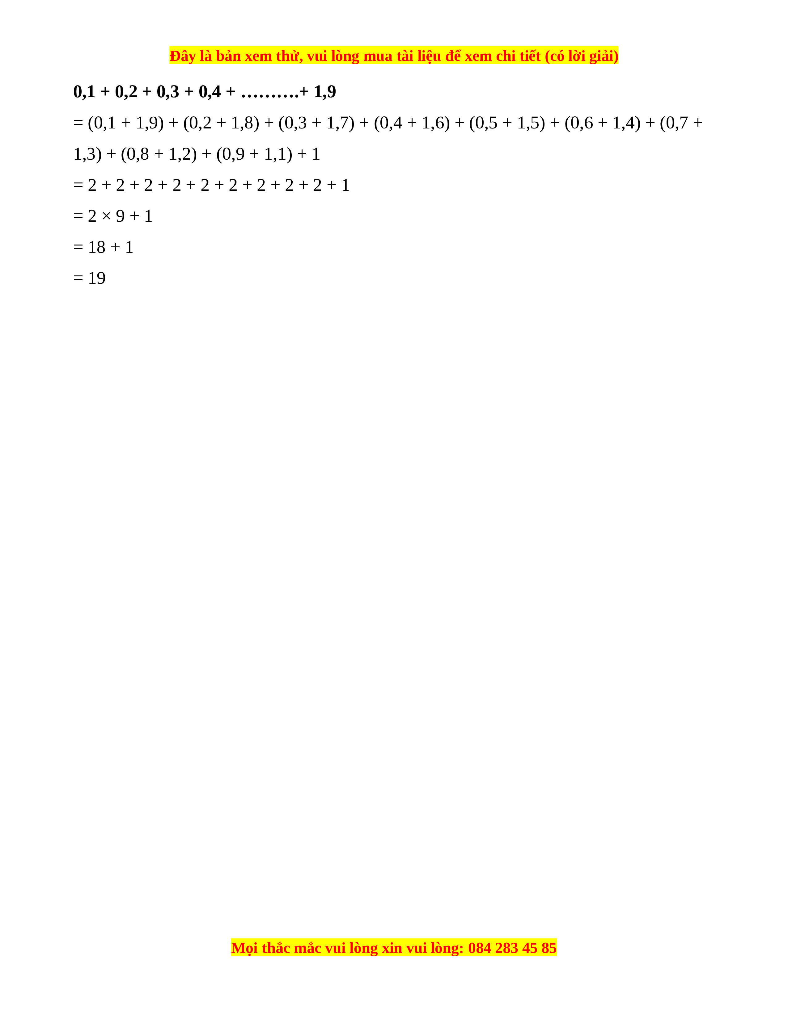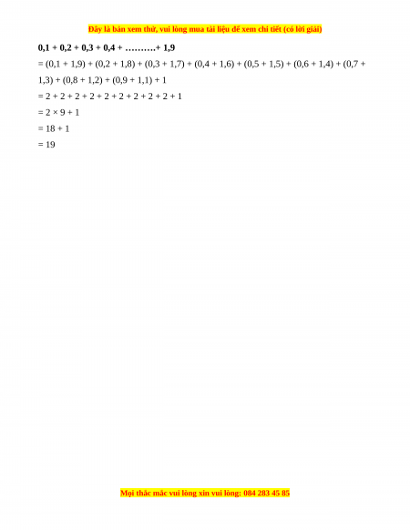 0,1 + 0,2 + 0,3 + 0,4 + ………. + 1,9