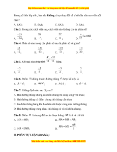 Câu 6. Điểm không thuộc đường thẳng được kí hiệu là A. ; B. ; C. ; D. .