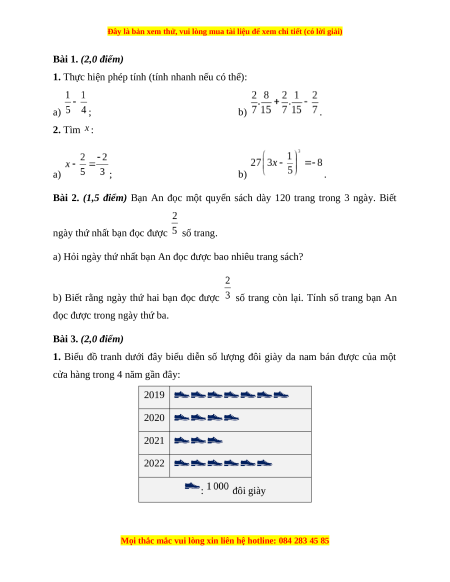 Bài 2. (1,5 điểm) Bạn An đọc một quyển sách dày 120 trang trong 3 ngày. Biết