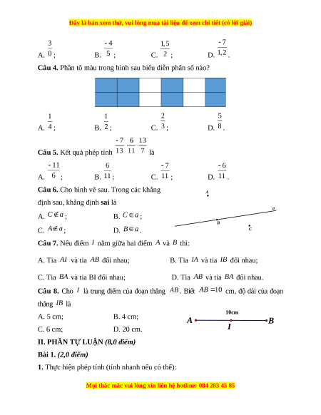 Câu 7. Nếu điểm nằm giữa hai điểm và thì: A. Tia và tia đối nhau; B. Tia và tia đối nhau; C. Tia và tia BI đối nhau; D. Tia và tia đối nhau.