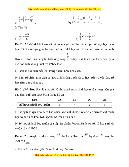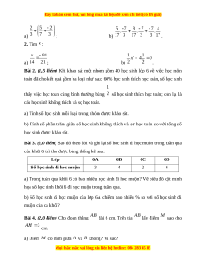 Bài 2. (1,5 điểm) Khi khảo sát một nhóm gồm 40 học sinh lớp 6 về việc học môn