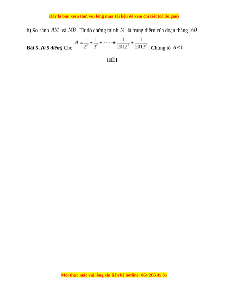 Bài 5. (0,5 điểm) Cho . Chứng tỏ .