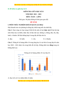 NĂM HỌC 2022 – 2023 MÔN: TOÁN – LỚP 6