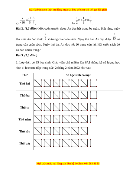 Bài 2. (1,5 điểm) Một cuốn truyện được An đọc hết trong ba ngày. Biết rằng, ngày