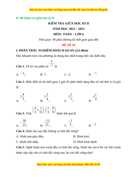 Thời gian: 90 phút (không kể thời gian giao đề) ĐỀ SỐ 10
