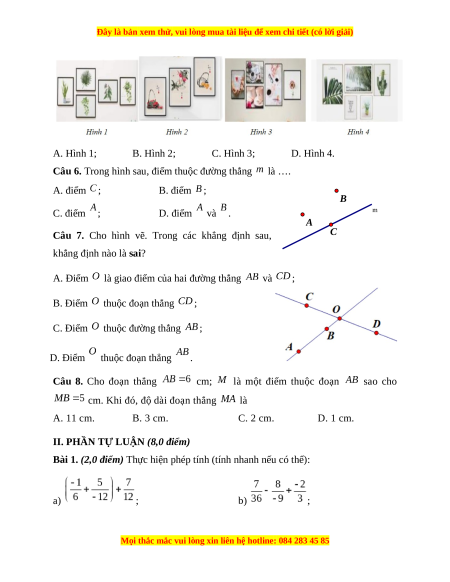 Câu 6. Trong hình sau, điểm thuộc đường thẳng là …. A. điểm ; B. điểm ; B C. điểm ; D. điểm và . m A