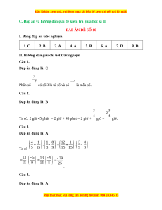 Câu 2. Biểu diễn số đo thời gian 2 giờ 45 phút dưới dạng hỗn số với đơn vị là giờ là A. ; B. ; C. ; D. . Câu 3. Tính được kết quả là A. ; B. ; C. ; D. .