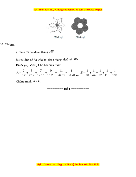 Bài 5. (0,5 điểm) Cho hai biểu thức: và . Chứng minh .