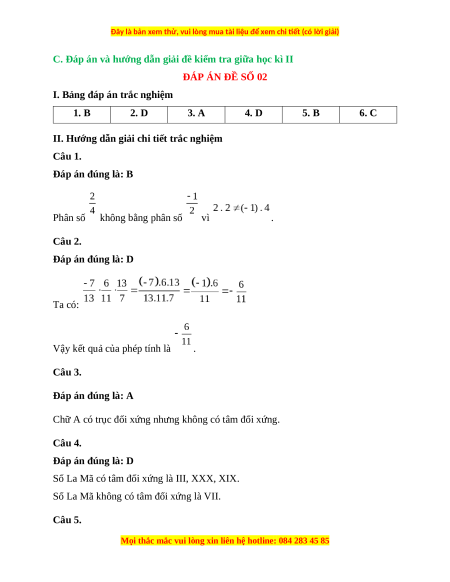 C. Đáp án và hướng dẫn giải đề kiểm tra giữa học kì II ĐÁP ÁN ĐỀ SỐ 02