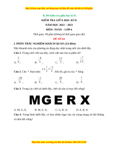 Câu 3. Trong các chữ cái dưới đây, chữ cái nào có trục đối xứng? A. M, G, E; B. M, E, X; C. G, R, X; D. E, R, X.