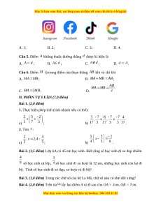 Câu 5. Điểm không thuộc đường thẳng được kí hiệu là A. ; B. ; C. ; D. . Câu 6. Điểm