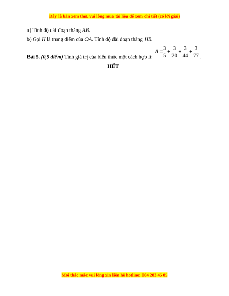 Bài 5. (0,5 điểm) Tính giá trị của biểu thức một cách hợp lí: .
