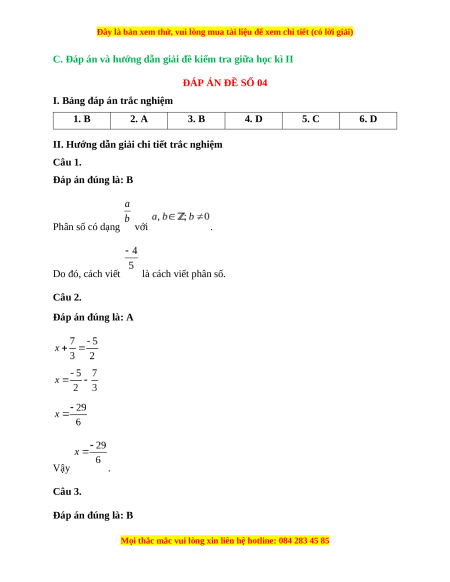 C. Đáp án và hướng dẫn giải đề kiểm tra giữa học kì II ĐÁP ÁN ĐỀ SỐ 04