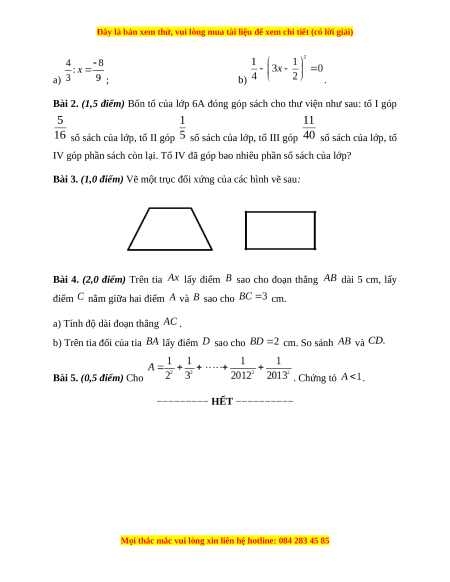 Bài 2. (1,5 điểm) Bốn tổ của lớp 6A đóng góp sách cho thư viện như sau: tổ I góp