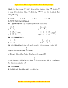 Bài 3. (1,5 điểm) Bạn An đọc một quyển sách dày 120 trang trong 3 ngày. Biết