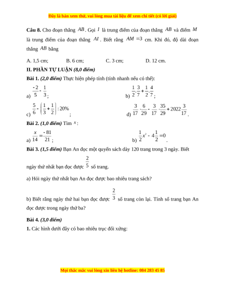 Câu 8. Cho đoạn thẳng