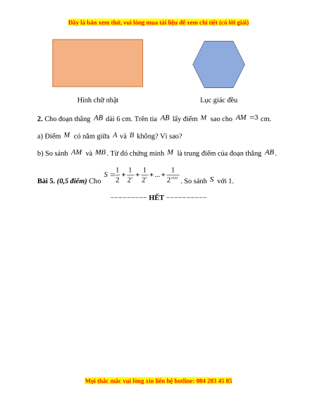 Hình chữ nhật Lục giác đều 2. Cho đoạn thẳng dài 6 cm. Trên tia lấy điểm sao cho cm. a) Điểm